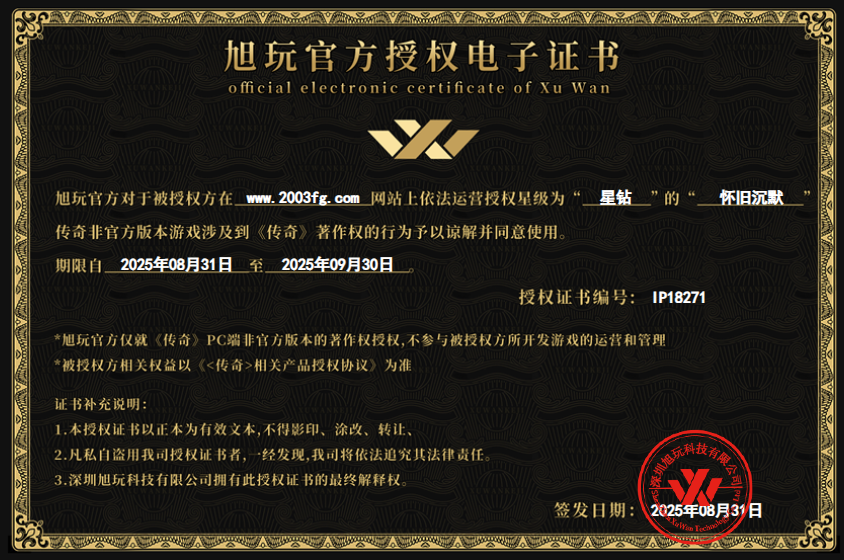 正规授权许可  证书列表 旭玩官方正规授权证书